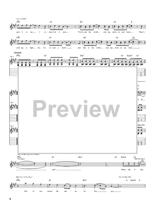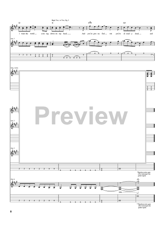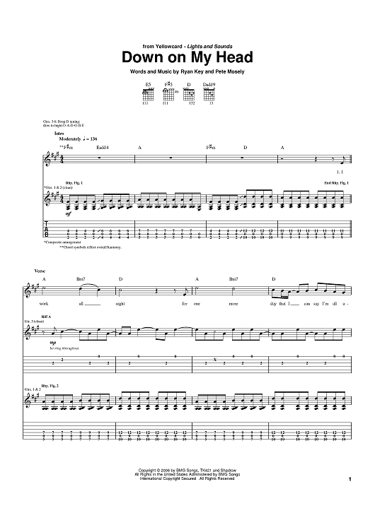 Digital Sheet Music for Down On My Head by Ryan Key, Peter Mosely, Yellowcard scored for Guitar Tab; id:390974