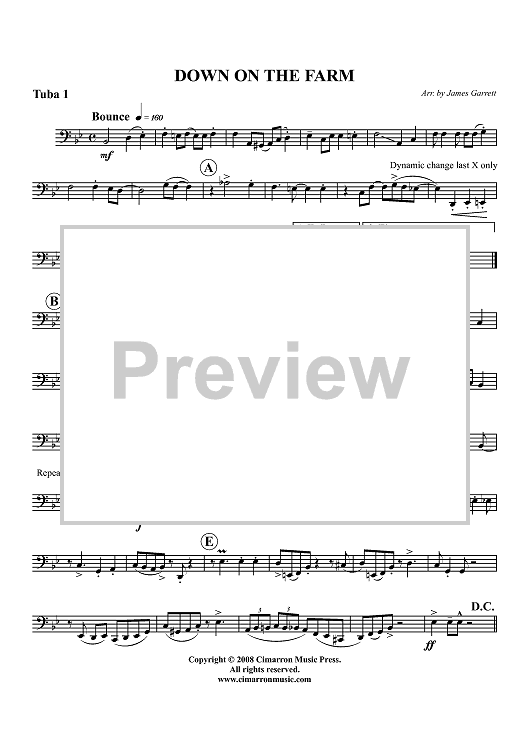 Digital Sheet Music for Down on the Farm - Tuba 1 by James Garrett, Traditional scored for Tuba Quartet; id:416761