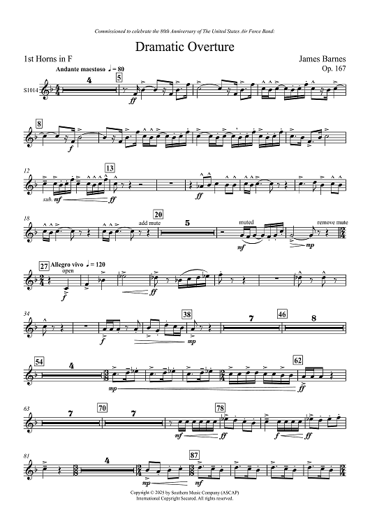 "Dramatic Overture - 1st Horns in F" Sheet Music by James Barnes