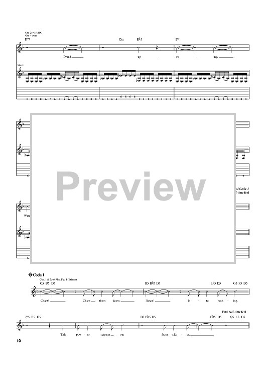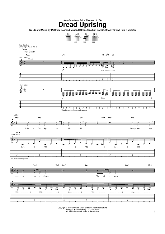Digital Sheet Music for Dread Uprising by Matthew Bachand, Jason Bittner, Jonathan Donais, Brian Fair, Paul Romanko, Shadows Fall scored for Guitar Tab; id:397392