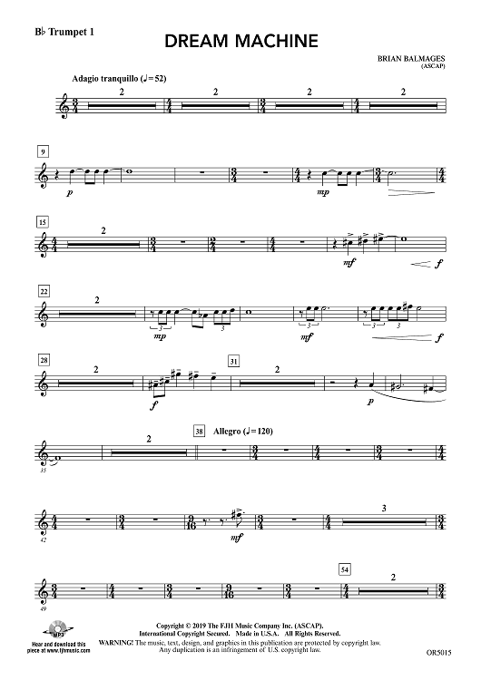 "Dream Machine - Bb Trumpet 1" Sheet Music by Brian Balmages