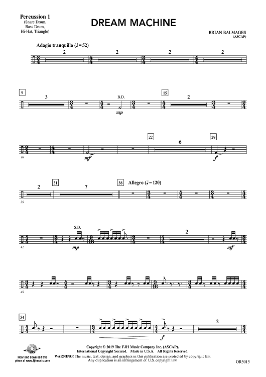 "Dream Machine - Percussion 1" Sheet Music by Brian Balmages