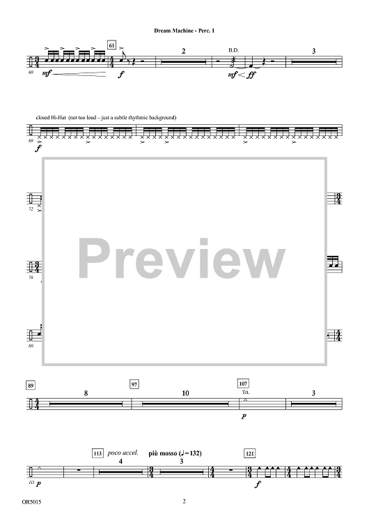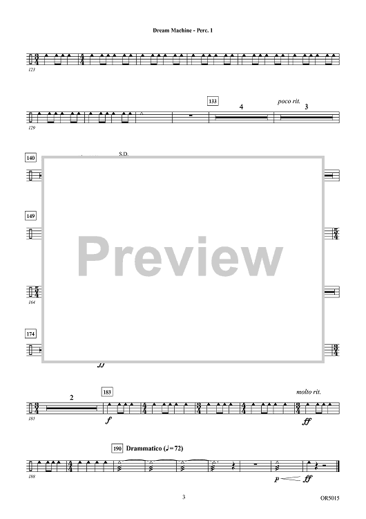 Digital Sheet Music for Dream Machine - Percussion 1 by Brian Balmages scored for Orchestra; id:506619