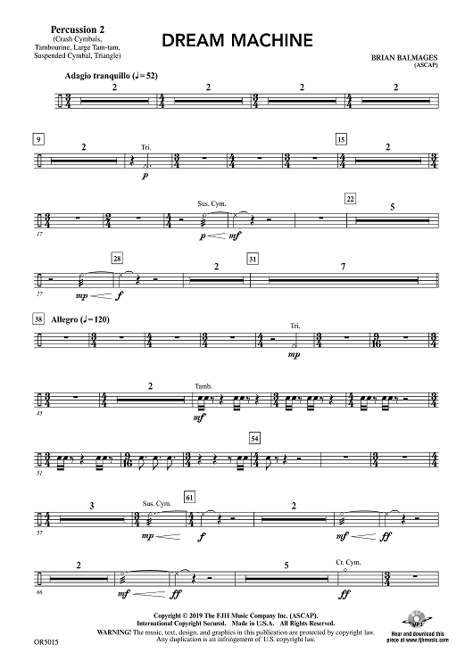 Digital Sheet Music for Dream Machine - Percussion 2 by Brian Balmages scored for Orchestra; id:506620