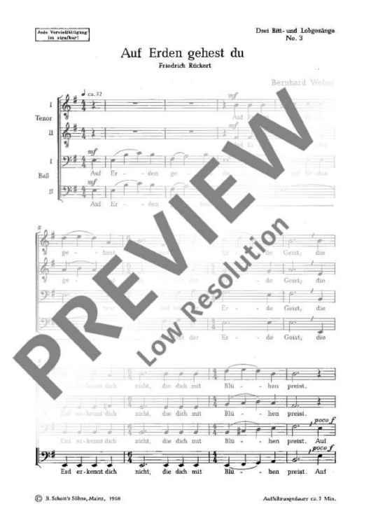 Digital Sheet Music for Drei Bitt- und Lobgesänge - Choral Score by Bernhard Weber scored for Men's Choir (ttbb); id:479975
