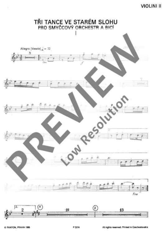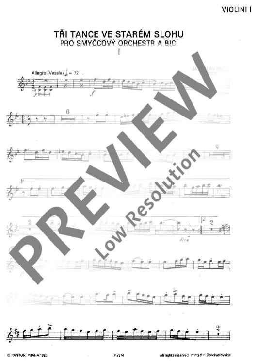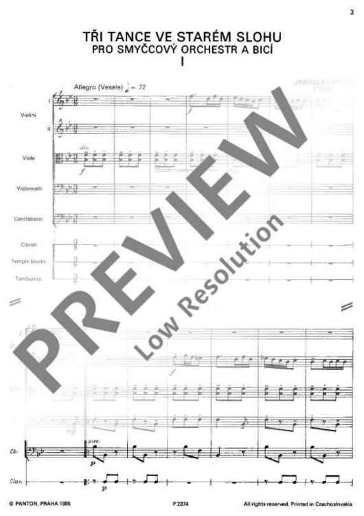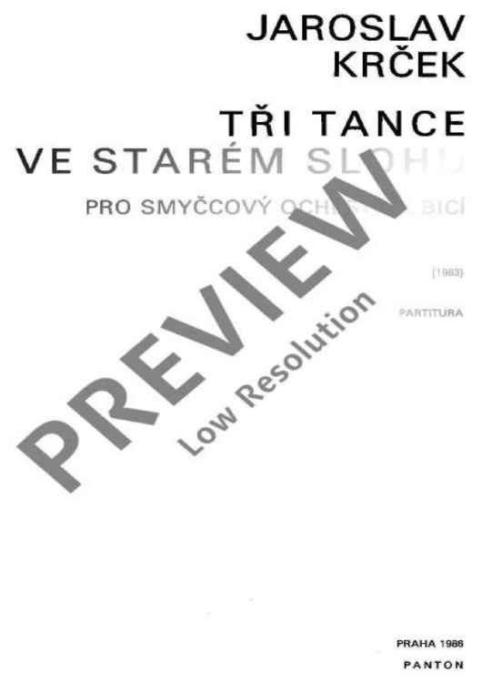 Digital Sheet Music for Drei Tänze im alten Stil - Score and Parts by Jaroslav Krcek scored for Percussion And String Orchestra; id:489531