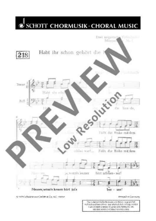 Digital Sheet Music for Drei ungarische Volkslieder - Choral Score by Klaus Fischbach scored for Men's Choir (ttbb); id:492856