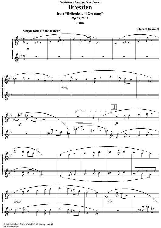 "Dresden, from "Reflections of Germany", Op. 28" Sheet Music by Florent Schmitt