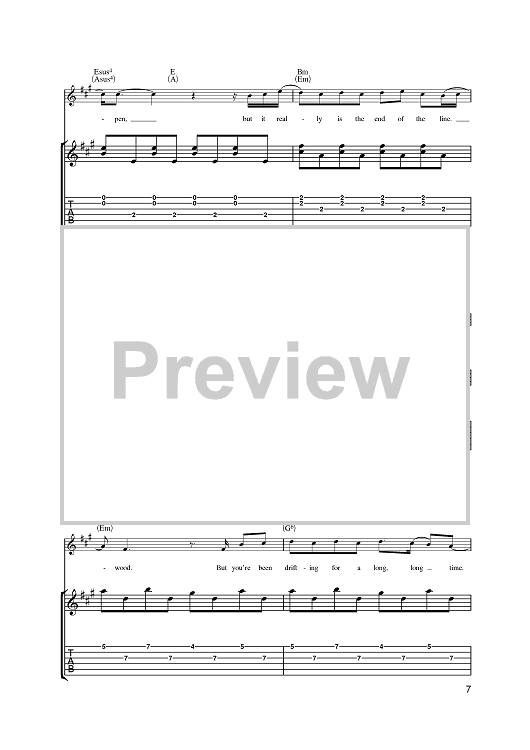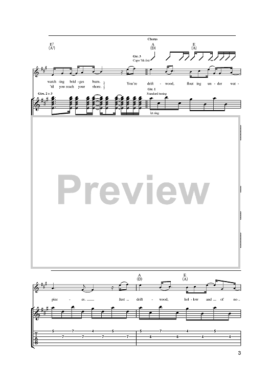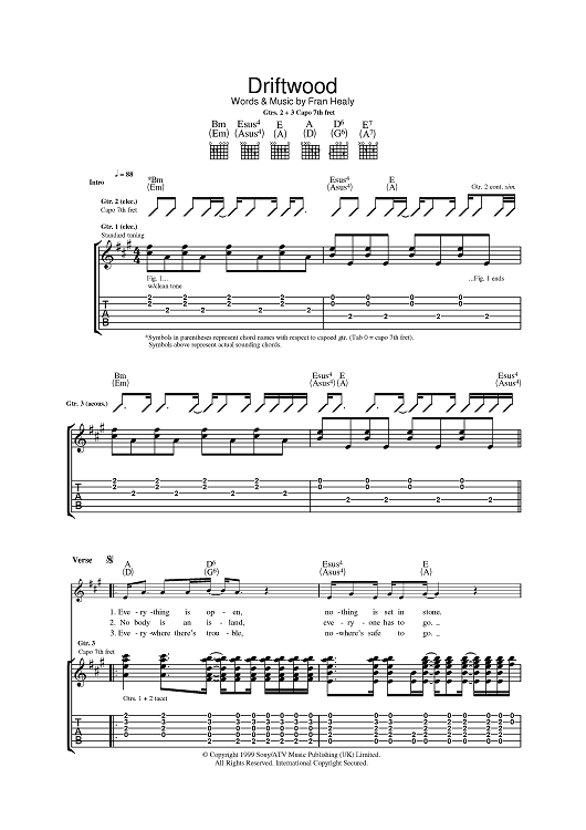Digital Sheet Music for Driftwood by Fran Healy, Travis scored for Guitar Tab; id:393611
