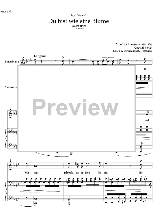 Digital Sheet Music for Du bist wie eine Blume Op.25 No.24 by , Robert Schumann scored for Soprano or Tenor/Piano; id:332710