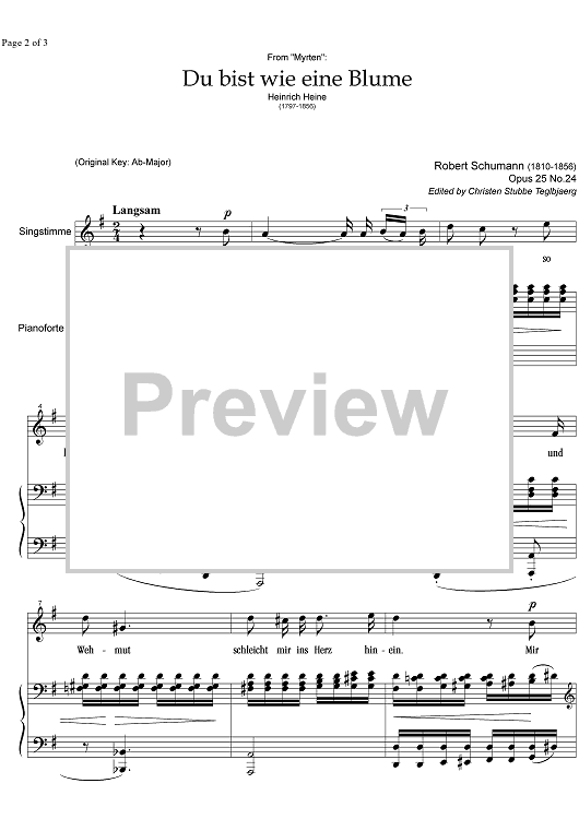Digital Sheet Music for Du bist wie eine Blume Op.25 No.24 by , Robert Schumann scored for Soprano or Tenor/Piano; id:332711
