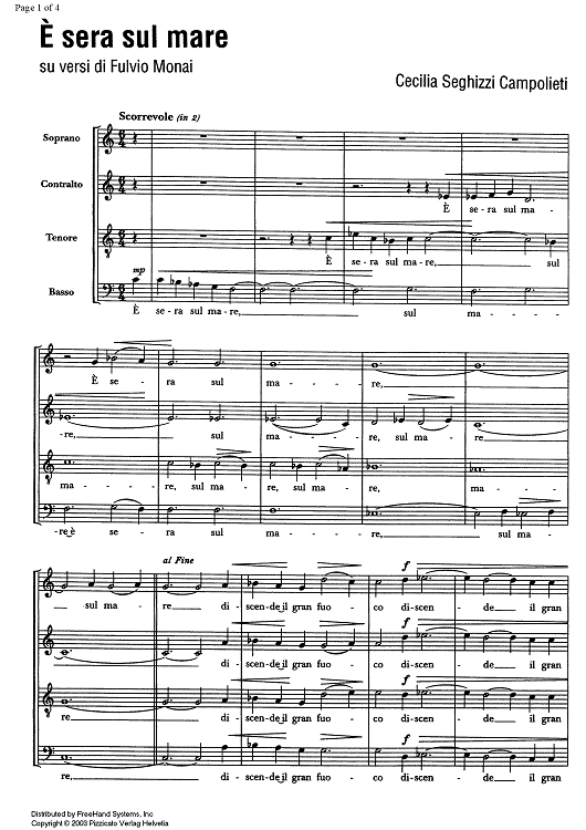 Digital Sheet Music for È sera sul mare by , Cecilia Seghizzi Campolieti scored for SATB Choir; id:350753