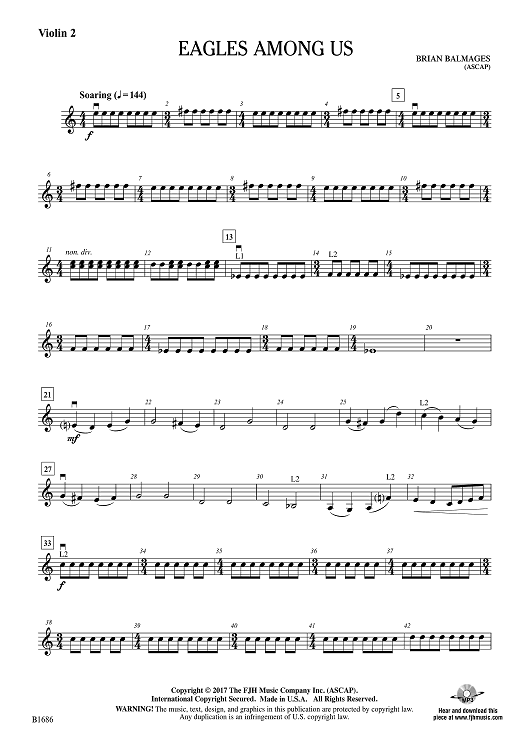 "Eagles Among Us - Violin 2" Sheet Music by Brian Balmages