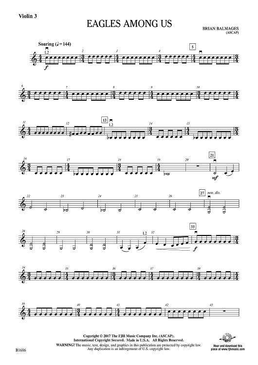 "Eagles Among Us - Violin 3" Sheet Music by Brian Balmages