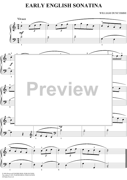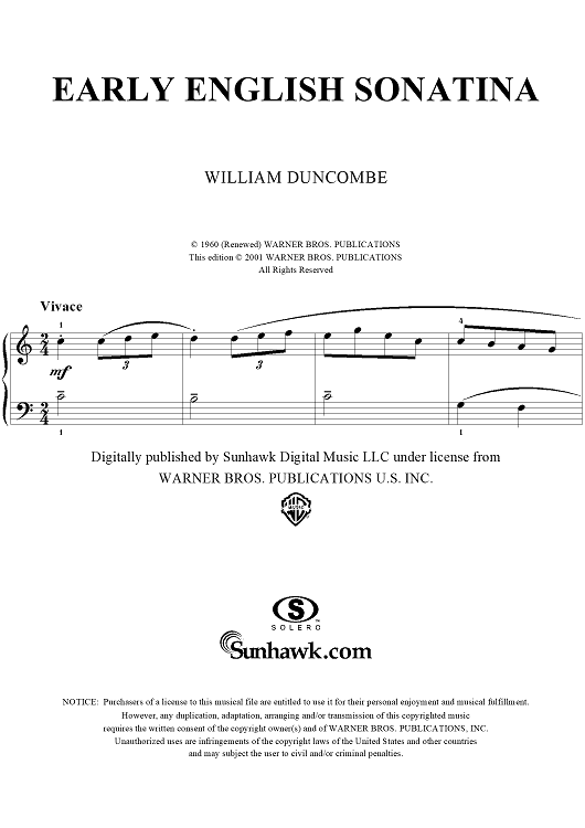 Digital Sheet Music for Early English Sonatina by William Duncombe scored for Easy Piano; id:286817