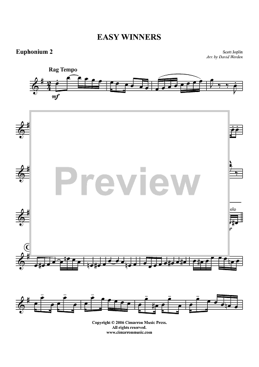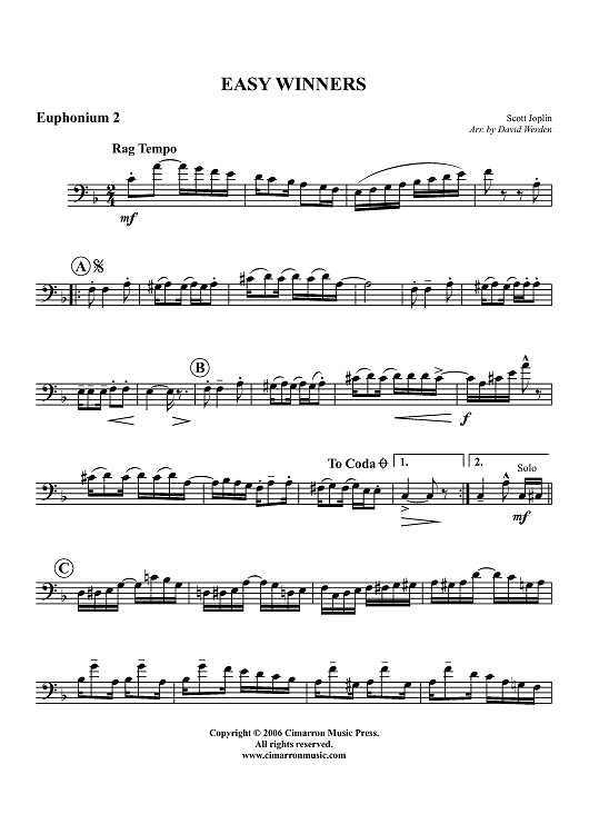 "Easy Winners - Euphonium 2 BC/TC" Sheet Music by Scott Joplin