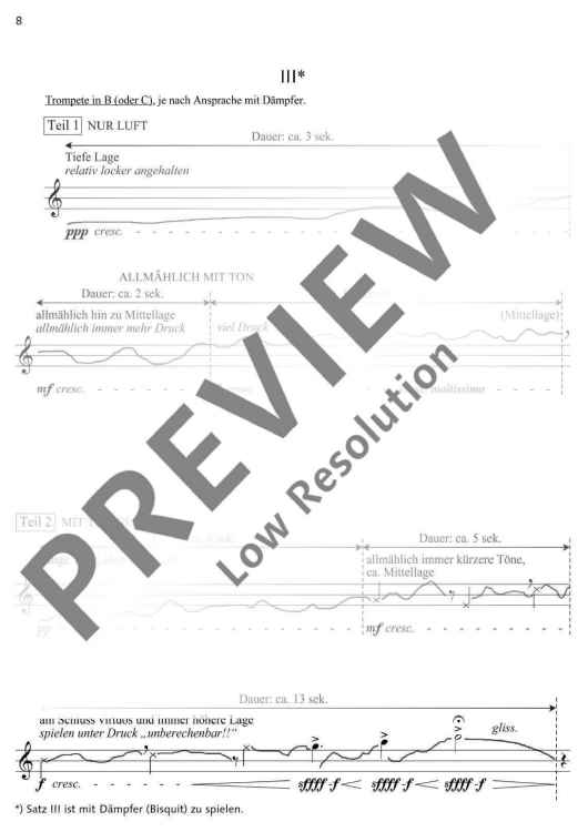 This piece was written in the wake of the trumpet concerto 'Eirene'. Both pieces were composed by Willi for the trumpeter Reinhold Friedrich who raves about the concerto: 'There is an inexplicable magic in this magnificent light/space work which gives both the audience and the musicians great inner pleasure.' This magic, however, is created by ascetic rather than romantic and lavish means. Willi composed a series of brief musical actions, tone repetitions and short flitting snatches of melody. Wind players who are familiar with all kinds of playing techniques are given much room for their own artistic interpretation.
