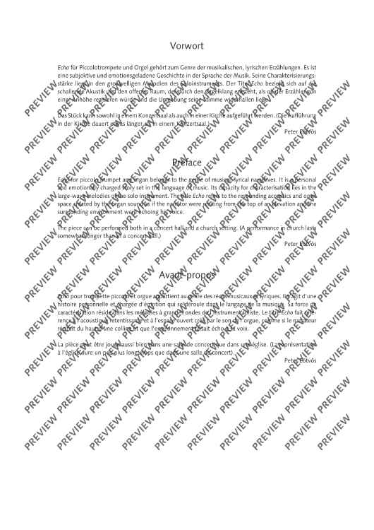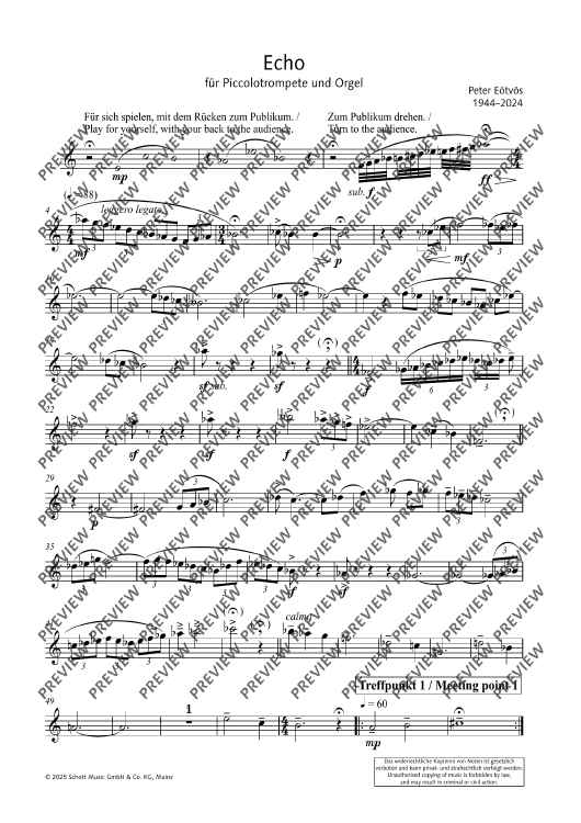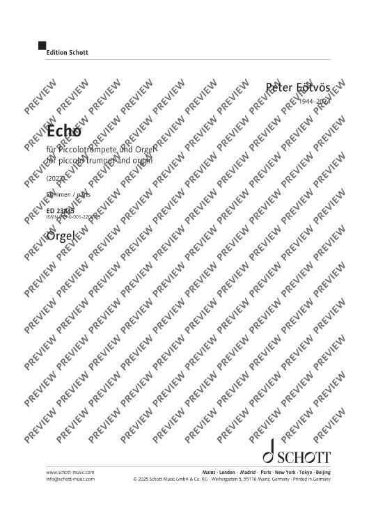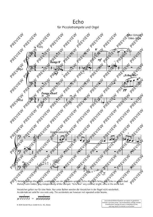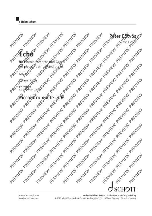 Digital Sheet Music for Echo - Set of Parts by Peter Eötvös scored for Piccolo-trumpet And Organ; id:510864