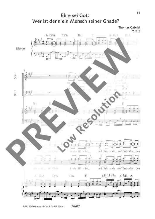 Digital Sheet Music for Ehre sei Gott / Wer ist denn ein Mensch seiner Gnade by Thomas Gabriel scored for Soloists (sab), Mixed Choir (satb) And Piano; id:487797