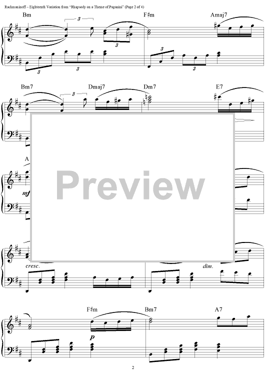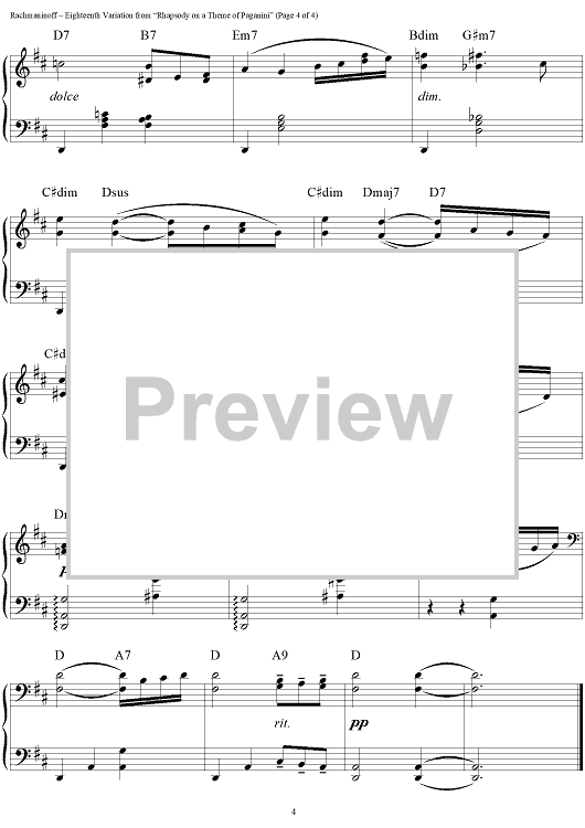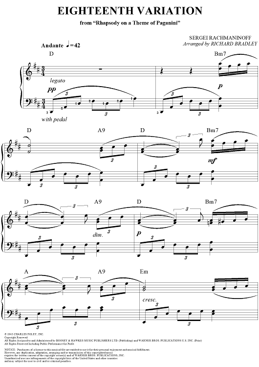 Digital Sheet Music for Eighteenth Variation by Richard Bradley, Sergei Rachmaninoff scored for Easy Piano; id:292447
