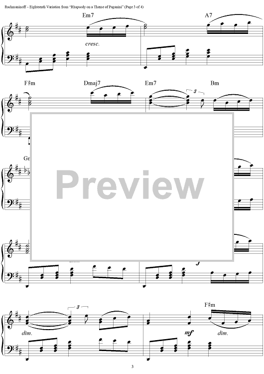 "Eighteenth Variation" Sheet Music by Sergei Rachmaninoff