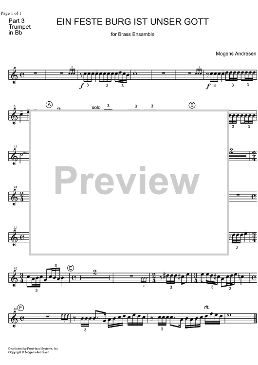 Digital Sheet Music for Ein Feste Burg ist Unser Gott - B-flat Trumpet by Unknown Writer, Mogens Andresen scored for Brass Ensemble; id:322043