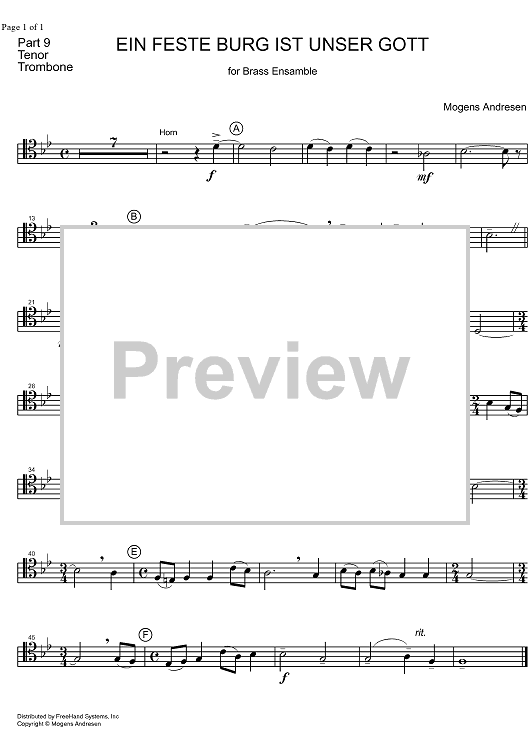 Digital Sheet Music for Ein Feste Burg ist Unser Gott - Tenor Trombone by Unknown Writer, Mogens Andresen scored for Brass Ensemble; id:322045