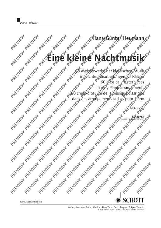 Mozart's Little Night Music is one of the most popular pieces in classical orchestra literature. The classical concert repertoire contains a wealth of works, including many other wonderful pieces. Many piano players are keen to play these works on the piano and get to know them better. The present anthology contains 60 well-known masterpieces of classical music in piano arrangements that are easy to play, yet remain as close to the original as possible. Always enjoyed by the audience, these 'all-time favourites' make classical masterpieces accessible to piano players. It is a 'treasure trove' for music lessons and hobby playing.