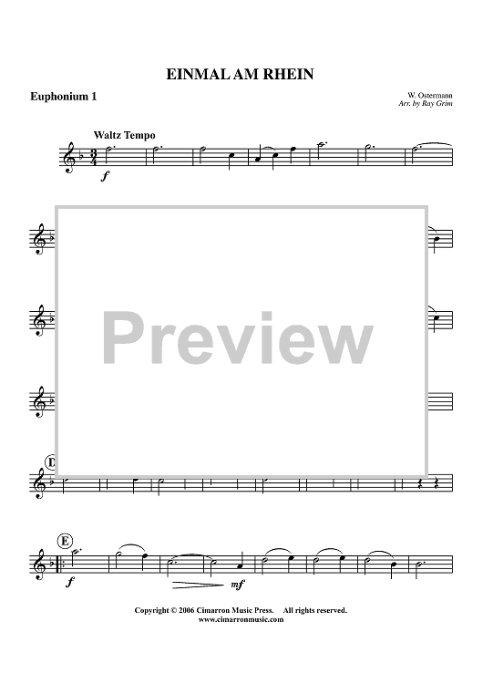 "Einmal Am Rhein - Euphonium 1 BC/TC" Sheet Music by Willi Ostermann