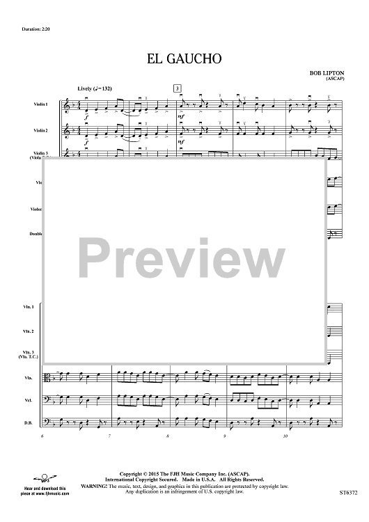 Digital Sheet Music for El Gaucho - Score by Bob Lipton scored for Orchestra; id:455562