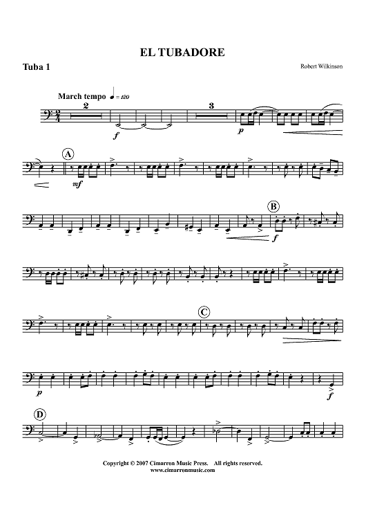 Digital Sheet Music for El Tubadore - Tuba 1 by Robert Wilkinson, Traditional scored for Tuba Quartet; id:416675
