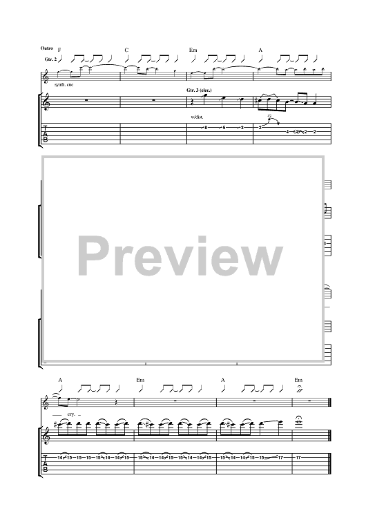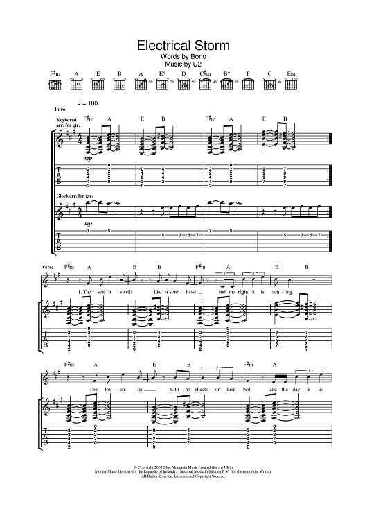 Digital Sheet Music for Electrical Storm by U2 scored for Guitar Tab; id:377723