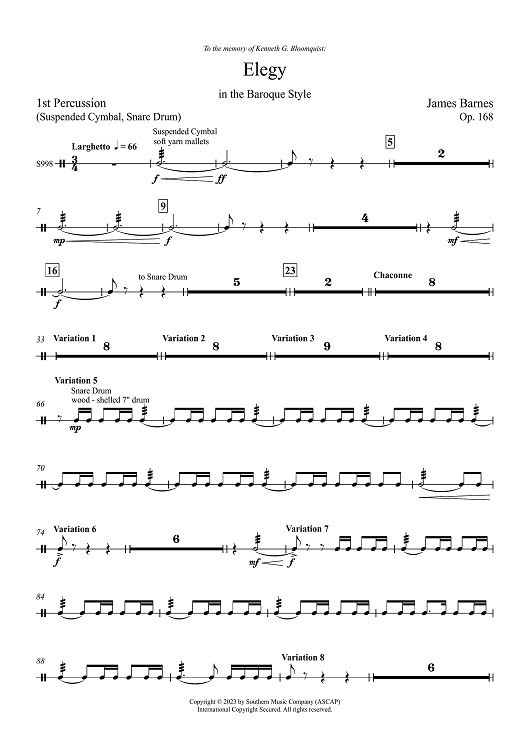 "Elegy in the Baroque Style - 1st Percussion" Sheet Music by James Barnes