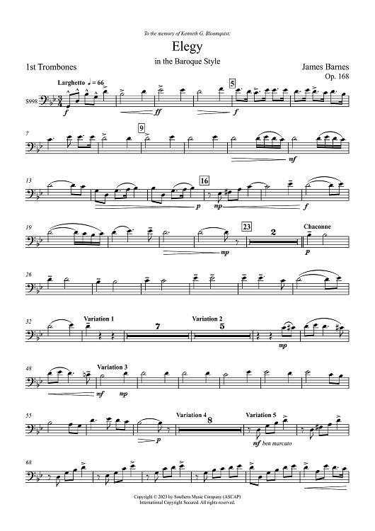 Digital Sheet Music for Elegy in the Baroque Style - 1st Trombones by James Barnes scored for Symhponic Wind Band; id:508767