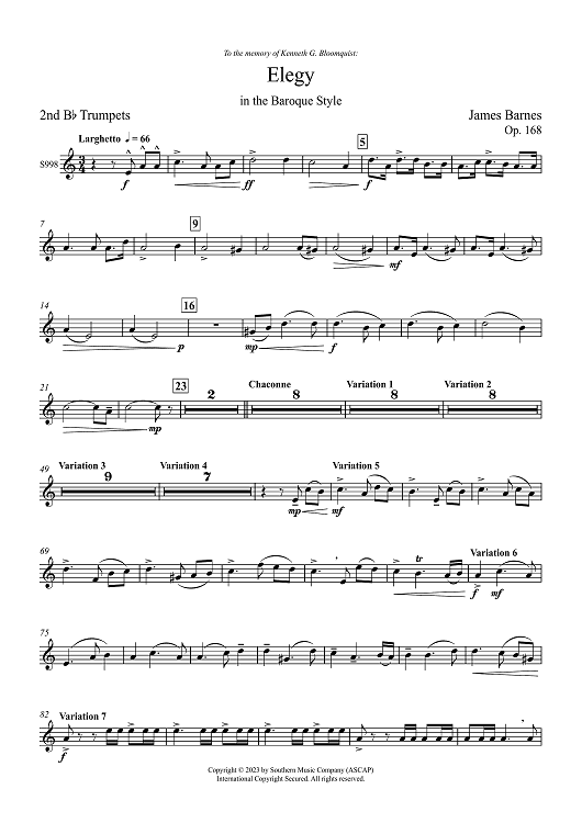 Digital Sheet Music for Elegy in the Baroque Style - 2nd Bb Trumpets by James Barnes scored for Symhponic Wind Band; id:508760