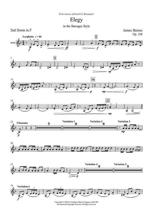 "Elegy in the Baroque Style - 2nd Horns in F" Sheet Music by James Barnes