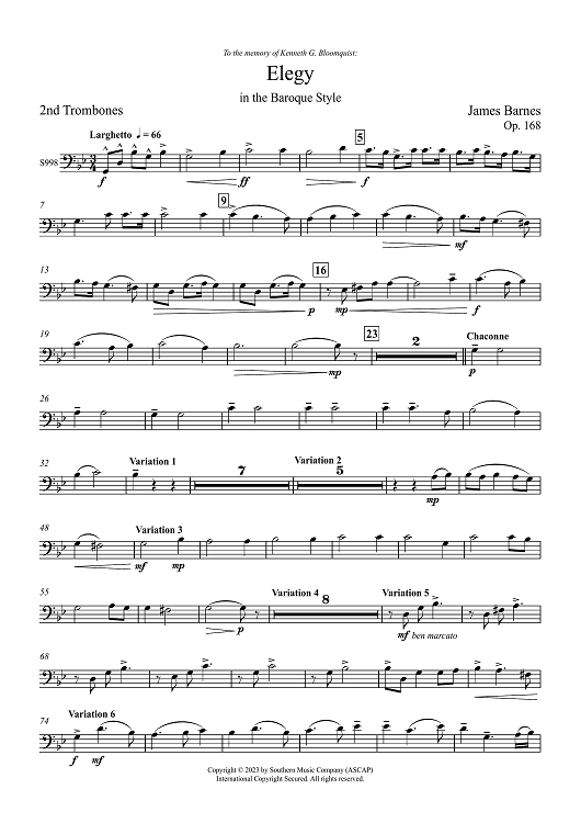 Digital Sheet Music for Elegy in the Baroque Style - 2nd Trombones by James Barnes scored for Symhponic Wind Band; id:508768