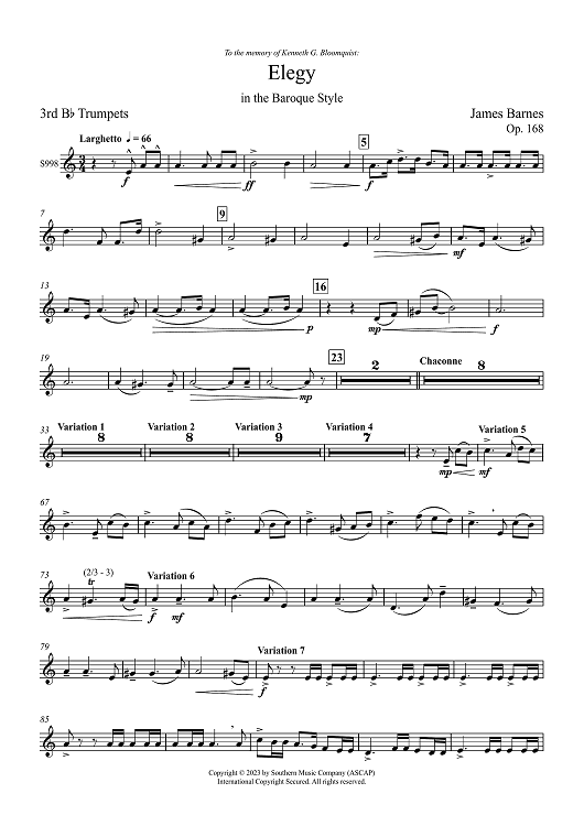 "Elegy in the Baroque Style - 3rd Bb Trumpets" Sheet Music by James Barnes