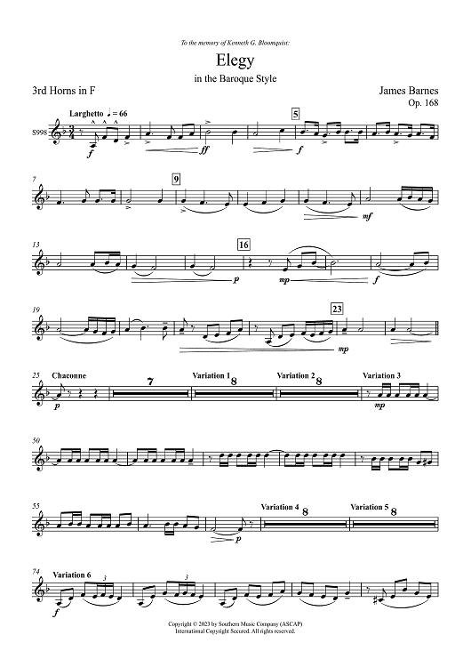 Digital Sheet Music for Elegy in the Baroque Style - 3rd Horns in F by James Barnes scored for Symhponic Wind Band; id:508765