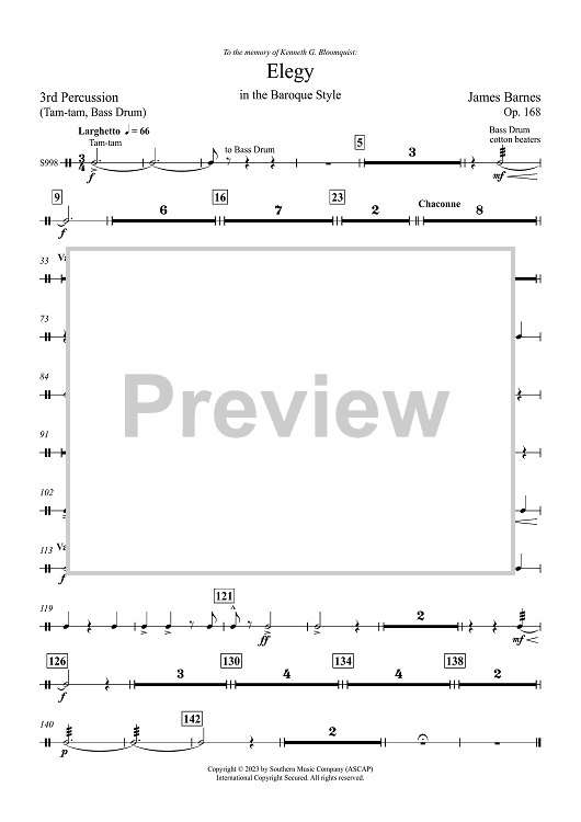 Digital Sheet Music for Elegy in the Baroque Style - 3rd Percussion by James Barnes scored for Symhponic Wind Band; id:508778
