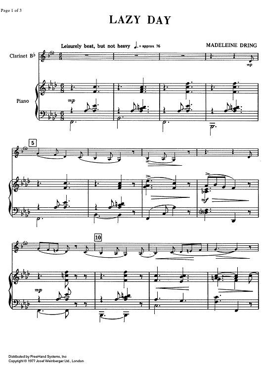Digital Sheet Music for Elementary 1/4 - Lazy Day - Score by Madeleine Dring scored for Clarinet/Piano; id:332619