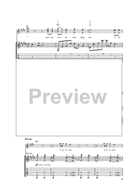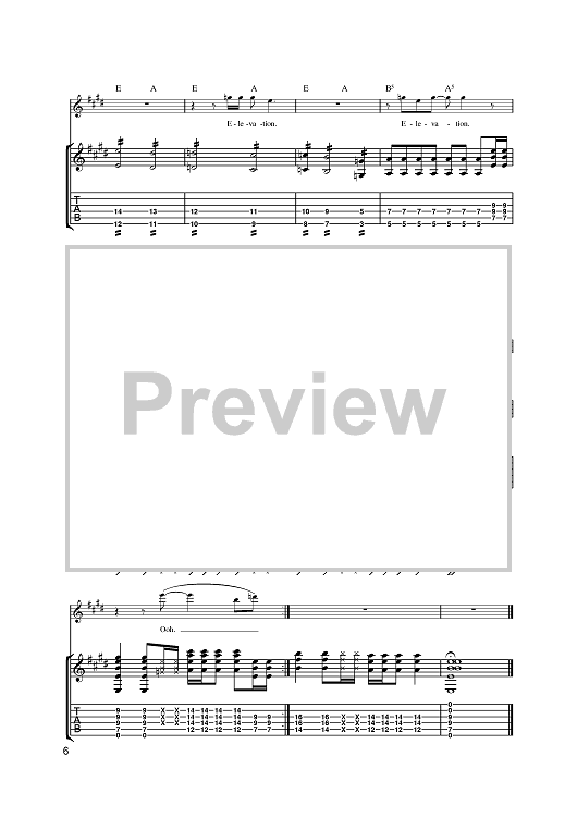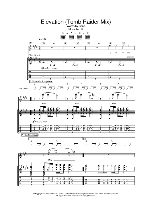 Digital Sheet Music for Elevation (Tomb Raider Mix) by U2, Bono scored for Guitar Tab; id:381921