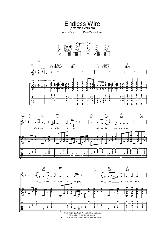 "Endless Wire (Extended Version)" Sheet Music by The Who