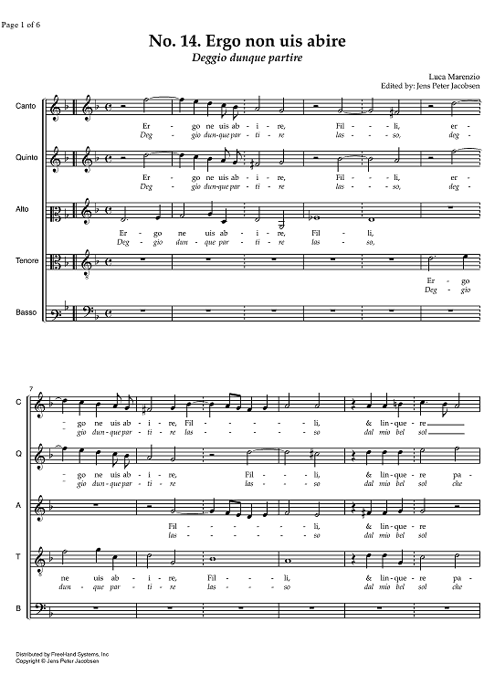 "Ergo non uis abire - Deggio dunque partire" Sheet Music by Luca Marenzio