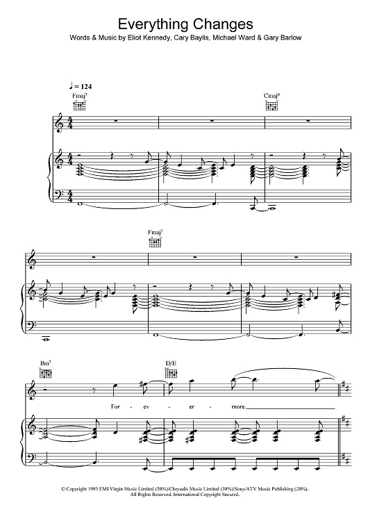 Digital Sheet Music for Everything Changes by Gary Barlow, Eliot Kennedy, Take That, Cary Baylis, Michael Ward scored for Piano/Vocal/Chords; id:396998