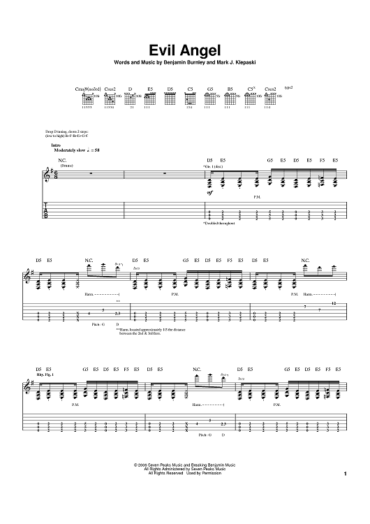 Digital Sheet Music for Evil Angel by Breaking Benjamin, Benjamin Burnley, Mark Klepaski scored for Guitar Tab; id:395018