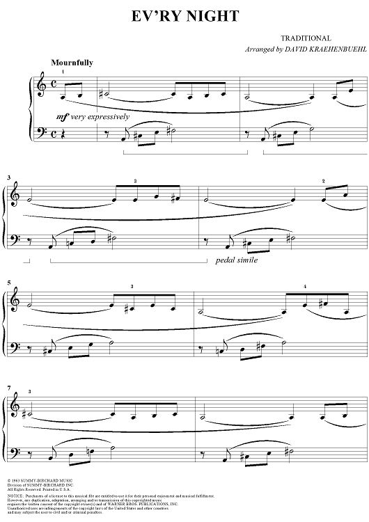 Digital Sheet Music for Ev'ry Night by David Kraehenbuehl, Traditional scored for Easy Piano; id:287394
