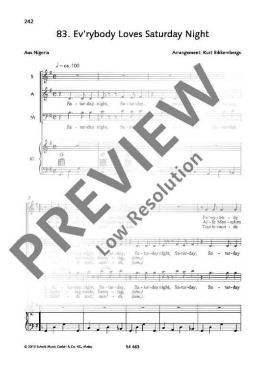 Digital Sheet Music for Ev'rybody Loves Saturday Night by Kurt Bikkembergs, Traditional scored for Mixed Choir (sabar) A Cappella; id:483508