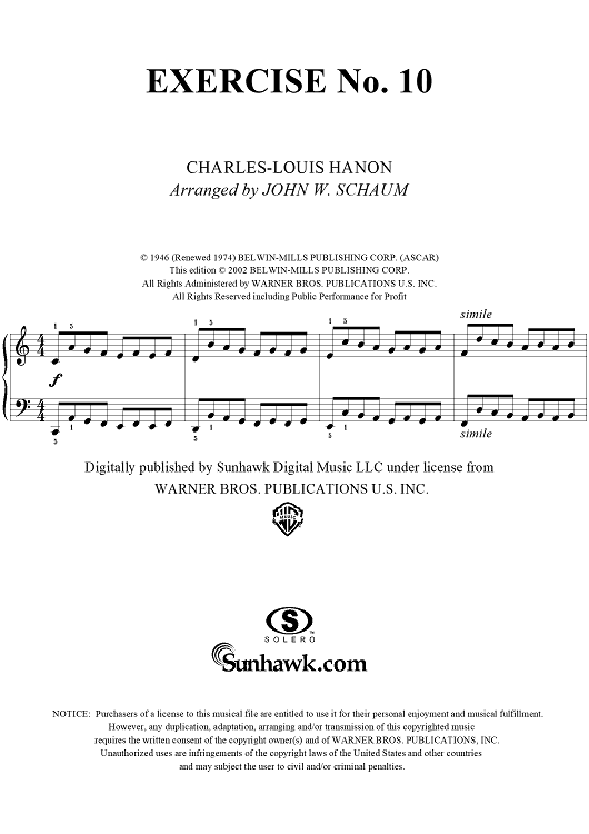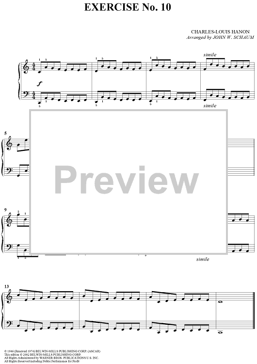 Digital Sheet Music for Exercise No. 10 by Charles-Louis Hanon, John W. Schaum scored for Piano Solo; id:287296
