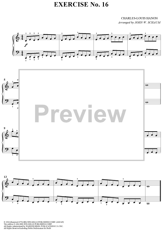 Digital Sheet Music for Exercise No. 16 by Charles-Louis Hanon, John W. Schaum scored for Piano Solo; id:287302